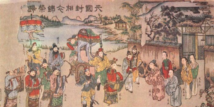 육국 동맹이 성사된 후 소진은 고향 낙양으로 돌아왔다. 그는 과거 자신을 멸시하던 가족과 이웃들을 다시 만났다. 그들은 이제 그에게 머리를 조아리며 공경을 표했다. 그는 가족들에게 웃으며 말했다.